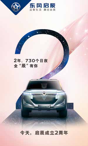 2019年2月7日,东风启辰正式成立两周年。梦想路上,我们一路前行;风雨兼程,我们一路相伴。愿未来的时光里,每一个故事里,都有你的身影;每一次前行,都有我的陪伴,第一个两年,有你有我,望未来的每一天,都全“辰”有你我相伴。