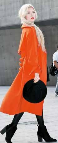 但不要忘记,搭配方案千千万:有时可以用大面积色彩来橘色闪闪,如卫衣、礼服、裙子等,让自己在一众黑白灰色调中脱颖而出;如果对自己的肤色没有自信,有时一个精致的小配饰就足以画龙点睛,如包包、围巾、帽子、袜子、眼镜等,从小物件开始时尚起来,也能给人焕然一新的感觉。