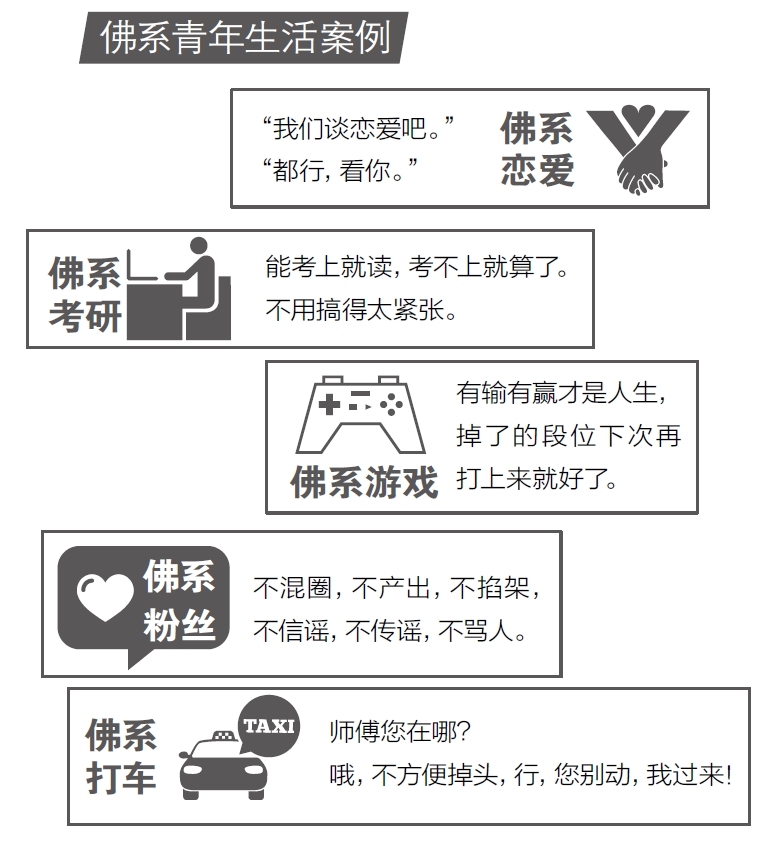 随着《第一批90后已经出家了》一文成为朋友圈爆文,“佛系青年”一词迅速走红中国大陆网络。那到底什么是“佛系”呢?“佛系”的意思被规定为这样:有也行,没有也行,不争不抢,不求输赢。对于“佛系青年”这一标签,有人讥讽,有人调侃,有人担忧,有人劝诫。每个人都有着各自的理解。